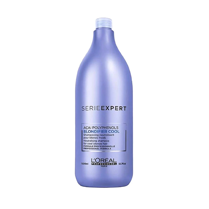 L’Oréal Serie Expert Blondifier Cool Shampooing 1500 ml est un shampooing violet neutralisant hautement performant, spécialement formulé pour les cheveux blonds, platines, méchés, balayés ou décolorés. Sa formule professionnelle combine des pigments violets correcteurs à l’extrait d’açaï, reconnu pour ses propriétés antioxydantes et nourrissantes, afin de restaurer l’éclat du blond tout en éliminant les reflets indésirables.